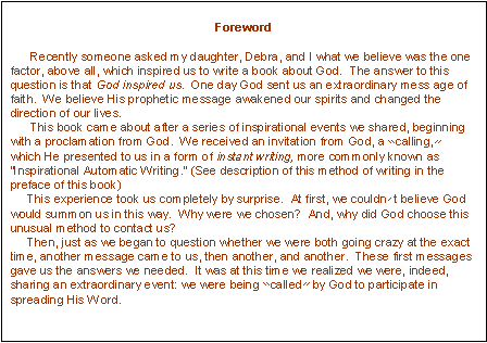 Home :: Guest Book :: Christian Resources :: Inspirational Page :: Online Bibles About the Authors :: Book Reviews :: Book Excerpts :: Contact :: FAQ's Order Book :: Search our Site :: Search the Bible :: Search the Internet The Interview with God :: God Speaks 9/11/01 Memorial The Angel in my Eye :: Butterfly :: The Passion of the Christ WebSite |